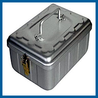 Made of aluminium with 2 lid fasteners.
